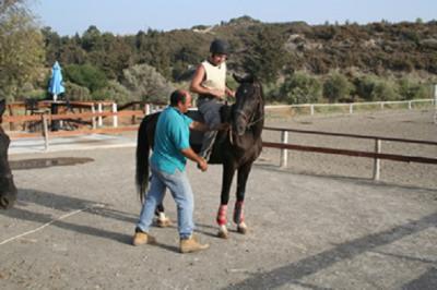 Η Ρούλα και ο Δημήτρης εργάζονται επίσης ως εκπαιδευτές στο κέντρο ιππασίας. Ένας από αυτούς θα σας συνοδεύσει στη βόλτα. Έχουμε 6 άλογα στα οποία μπορείτε να καβαλήσετε. Και έχουμε ένα πόνυ για βόλτα. Οδηγείτε σε ομάδες για να μπορείτε να πάρετε τους φίλους σας μαζί σας. Βρίσκεται κοντά στο ξενοδοχείο Venezia στο Φαληράκι.