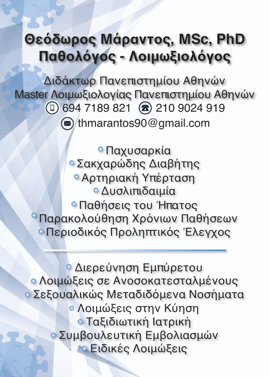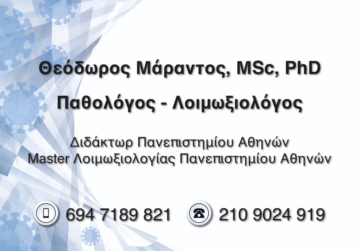 ΘΕΟΔΩΡΟΣ ΜΑΡΑΝΤΟΣ MD, MSc, PhD - ΠΑΘΟΛΟΓΟΣ ΝΕΟΣ ΚΟΣΜΟΣ ΑΘΗΝΑ - ΛΟΙΜΩΞΙΟΛΟΓΟΣ ΝΕΟΣ ΚΟΣΜΟΣ ΑΘΗΝΑ