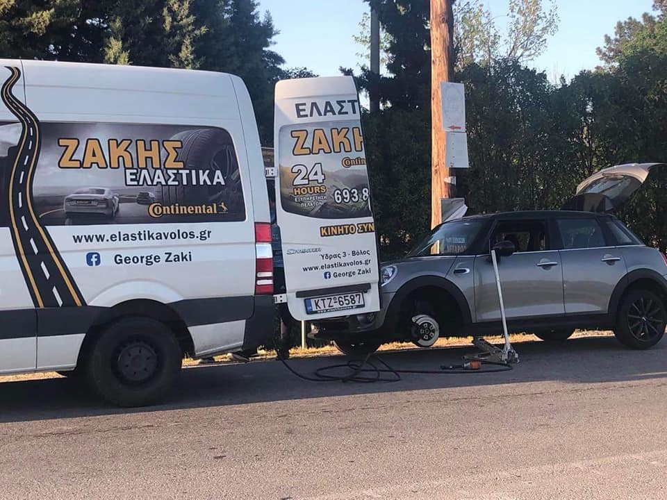 Εάν πάθατε λάστιχο στο δρόμο, το βουλκανιζατέρ μας "Γιώργος Ζάκης" διαθέτει κινητό συνεργείο αυτοκινήτων που είναι σε θέση να σας εξυπηρετήσει άμεσα όλο το 24ωρο.